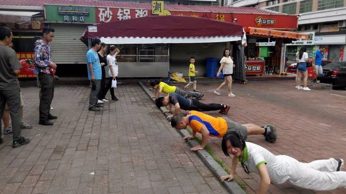 男同胞因体重原因,走平衡带没什么优势,不过所有人都没有落下这一节。