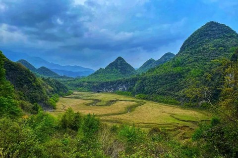 它丝带般在喀斯特峰林之间缠绕,还能欣赏到罕见的特大天坑-饭甑洞天坑,风景秀丽而原始。