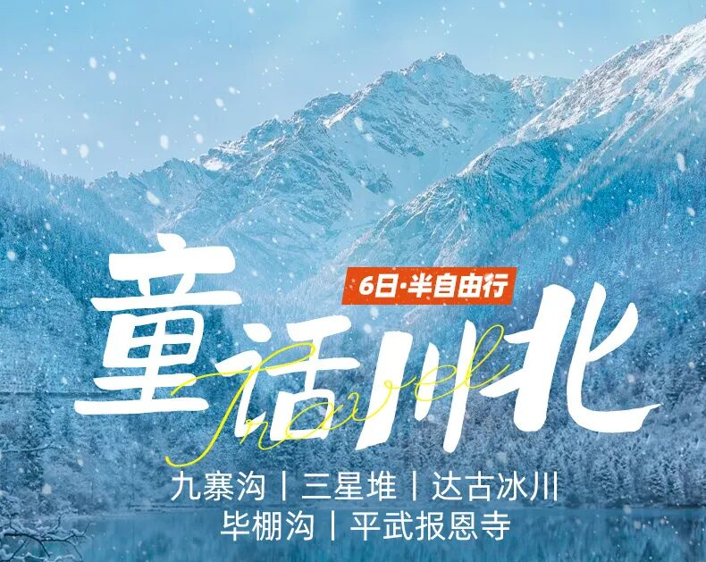 九寨沟+三星堆+毕棚沟+达古冰川+平武报恩寺+古尔沟温泉6日·半自由行