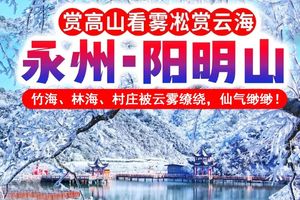 08:00 左右到达阳明山。每逢冷空气来临,山上就会展观的雾海雾凇奇观,竹海、林海、村庄被云雾缭绕,仙气缈缈,万寿寺前云海翻涌,波澜壮阔,景象非常震撼。到达阳明之巅,再爬上898级天梯,真正走上顶峰,四周白雪皑皑,好一派南国雪景。(注:从山门走到阳明山顶峰,总共12公里,往返需要7小时,建议是徒步登山,坐车下山,这样既有登山的乐趣,又节省了体力,主要还留充足的时间玩和拍照。)
