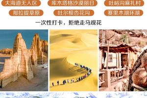 3. 全程景区门票+区间车:大海道门票+车票、库木塔格沙漠门票+小火车、那拉提草原门票+空中草原区间车、吐尔根杏花沟门票+区间车、大西沟杏花谷门票+区间车、赛里木湖门票+区间车;