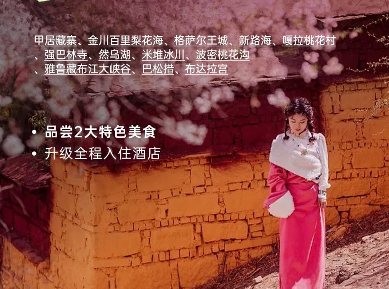 玩聚· 绝密川藏桃花节 | 新路海.甘孜白塔.色达.泸定.林芝桃花.金川梨花.甲居藏寨梨花.南迦巴瓦.巴松措.格萨尔王城.玉隆拉措.强巴林寺.然乌湖.米堆冰川.怒江72拐.雅鲁藏布大峡谷.布达拉宫.G318+G317.升级2+1保姆车12日