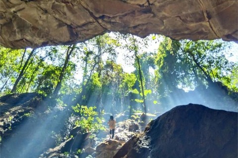 全程一共13洞,值得看的洞8天窗岩,拍合照的地方,大石头很出片,洞顶有一个方形凹陷;洞9黑岩,不起眼的小入口,一开始得蹲着进入,慢慢通道开朗,山洞很大岔路多容易迷路,路面湿滑,有很清但很深的水潭,注意安全;洞12波斯岩,也就是他们说的“耶稣之光”打卡点,阳光从洞口射入拍到丁达尔现象很美,今天的光线不够手动加光,注意此位置易有落石;