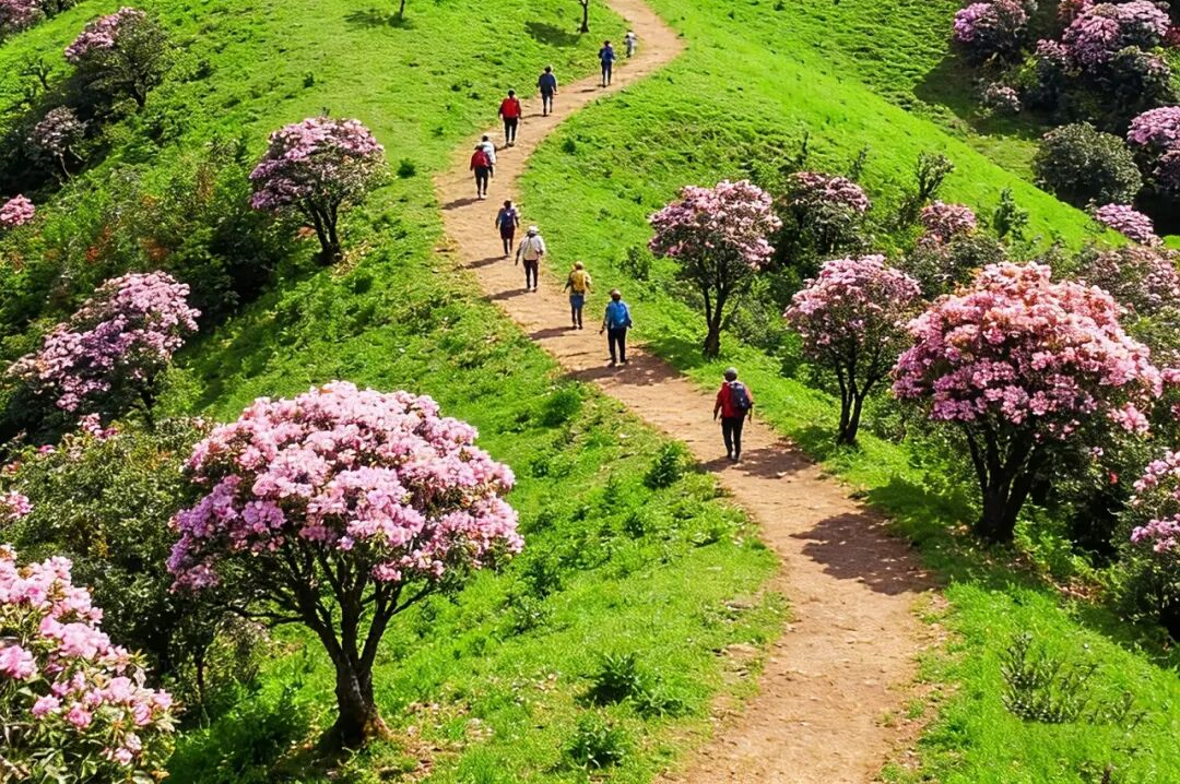 每年3月底-4月底鸡笼顶的高山杜鹃花全部盛开