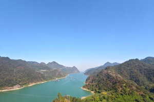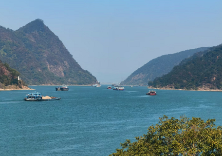 12:30 用餐完毕,继续出发,一路是秀美的江景风光。